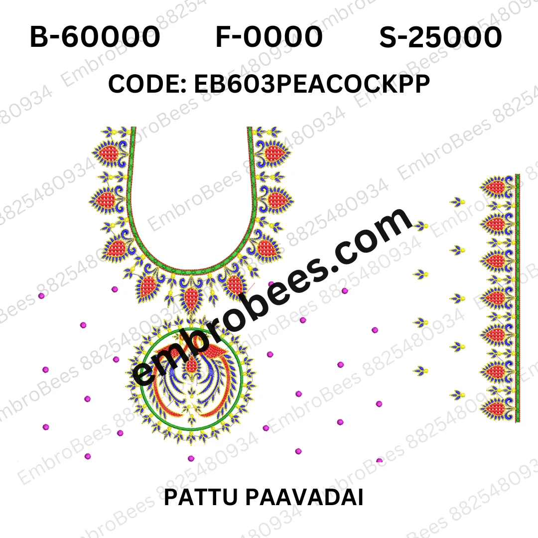 Ornate Peacock Embroidery for Pattu Pavadai – EB603PEACOCKPP